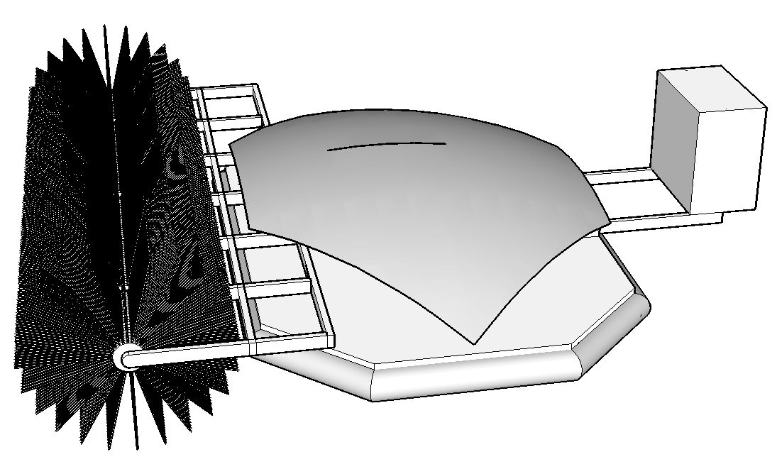 ホバークラフトのように田んぼに浮いて、ブラシで田圃の初期除草を行う。