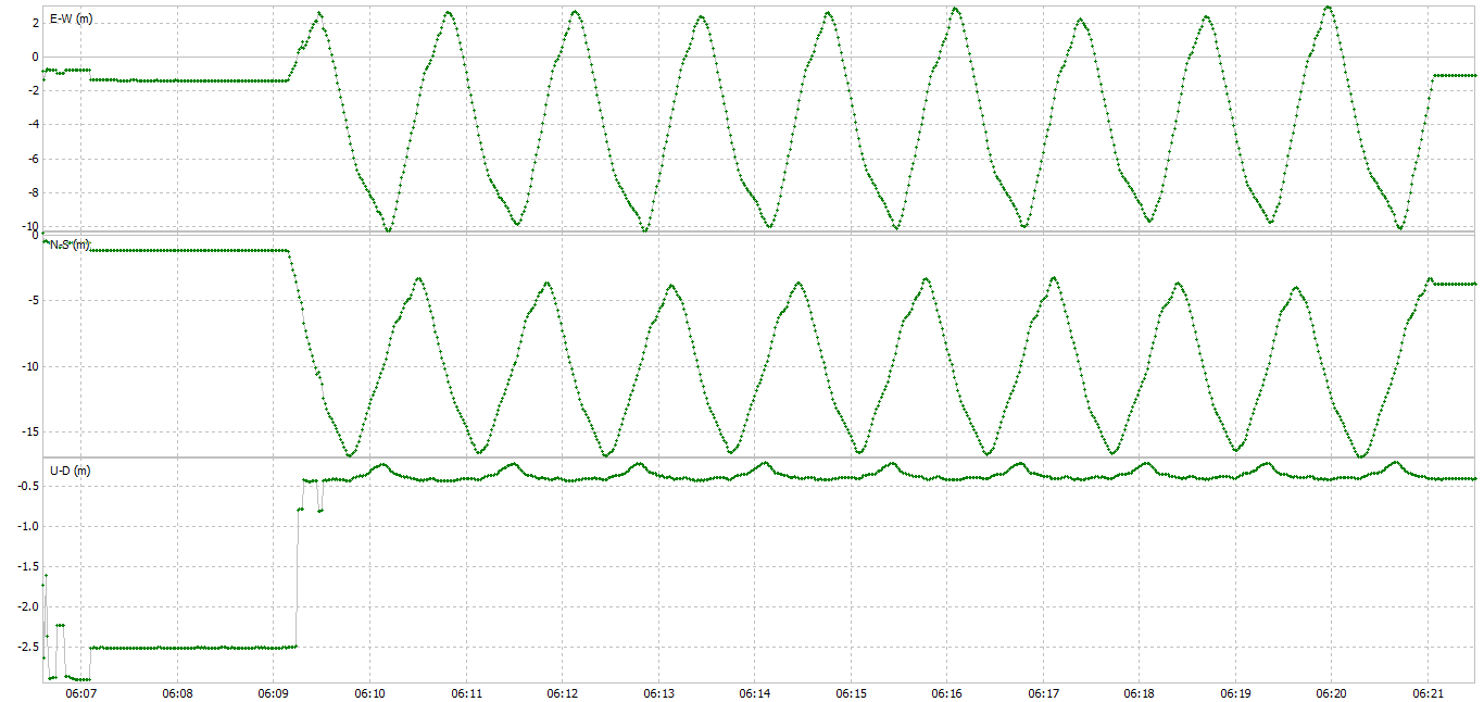 参考までに南北、東西、高さのポジションをプロットした図を紹介します。 約8.5周しています。